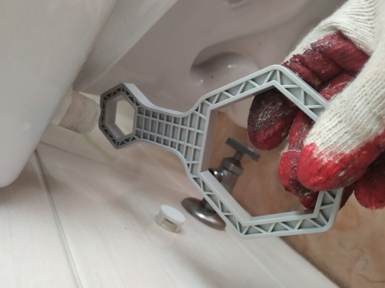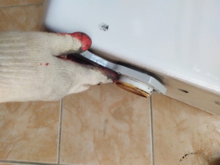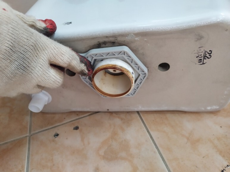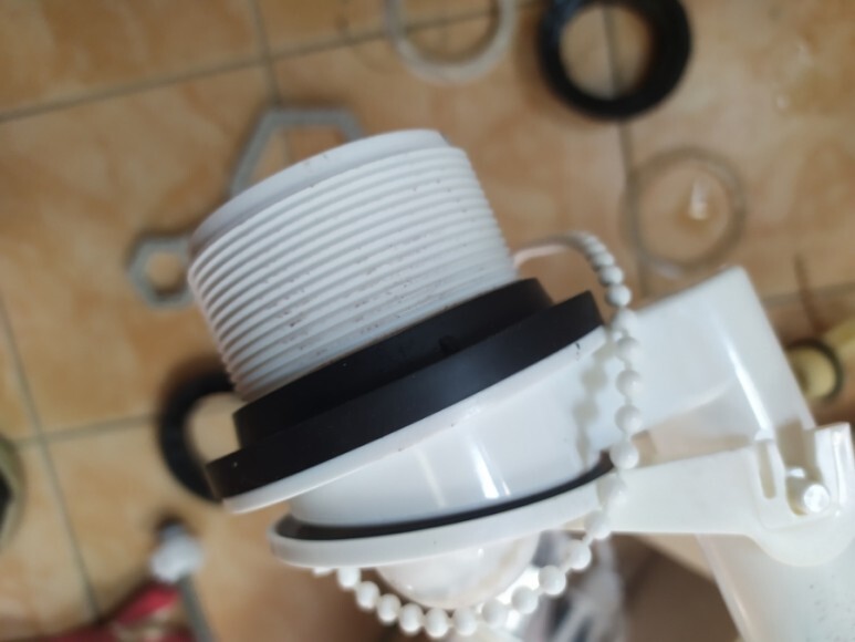 플러시 밸브에 고무바킹을 끼우고 물통과 결합한 후, 육각 너트로 고정을 해줍니다.