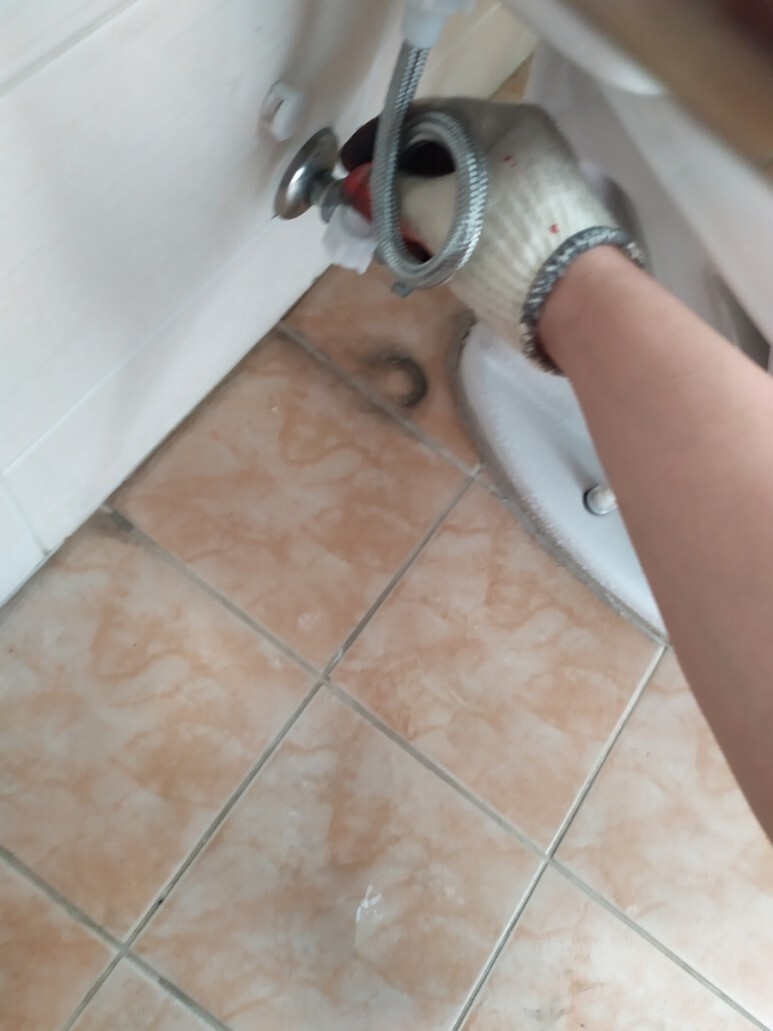 일단 앨글밸브 배관을 잠그고 나서 물을 내려 물통을 비워줍니다. 그리고 앵글밸브와 고압호스를 분리해 주세요